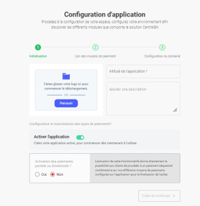 Activez l’application pour la rendre opérationnelle. Une application activée est prête à accepter des paiements en utilisant CentralBill.