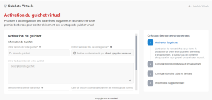 Renseignez le nom du guichet virtuel, définissez le préfixe de l’URL, ajoutez une description détaillée, choisissez la devise à utiliser, et spécifiez la date de clôture automatique si nécessaire.
