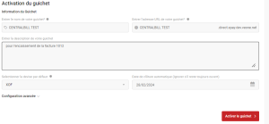 Enregistrez les paramètres configurés et activez le guichet virtuel. Celui-ci sera désormais prêt à être associé à des bordereaux d’encaissement.